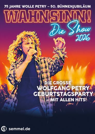 2026 ist das Jahr, in dem Wolle seinen 75. Geburtstag feiert sowie sein 50. Bühnenjubiläum hätte! Wenngleich er nicht mehr selbst auf der Bühne steht, so haben seine Fans den größten Spaß, all seine Hits und Ohrwürmer zu feiern. „Wahnsinn – Die Show 2026“ bietet nicht nur jede Menge Wolfgang Petry-Hits, sondern ist gleichzeitig eine atemberaubende Zeitreise, die bewegende Momente, unterhaltsame Geschichten und persönliche Anekdoten aus Wolfgang Petrys Karriere noch einmal aufleben lässt. Die Show, die 2026 bereits zum 5. Mal stattfinden wird, stellt die Musik und Original-Songs der Schlagerikone in den Mittelpunkt und feiert in 2026 die große Wolfgang Petry Geburtstagparty – mit all seinen Hits wie Verlieben, verloren, vergessen, verzeihen, Der Himmel brennt und natürlich auch Wahnsinn.